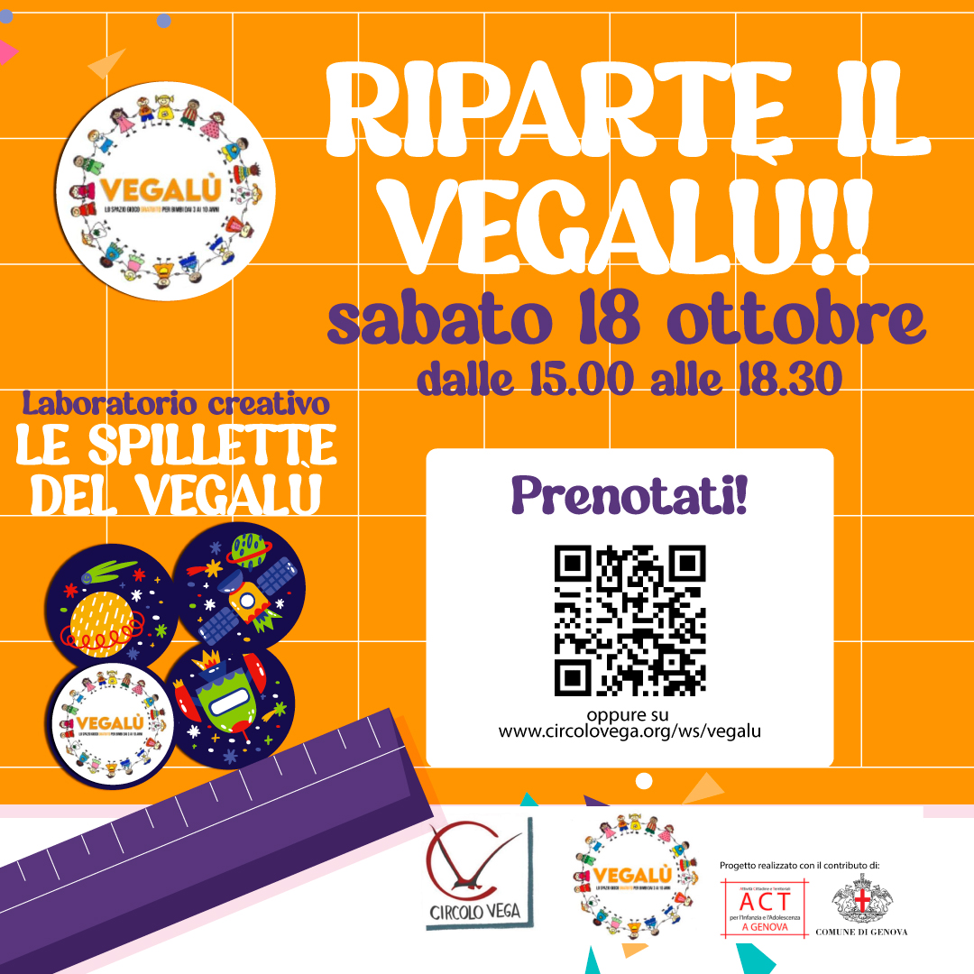 Sabato 18 ottobreĀ il Vegalù riparte con il laboratorio creativo āLe spillette del Vegalù!ā
